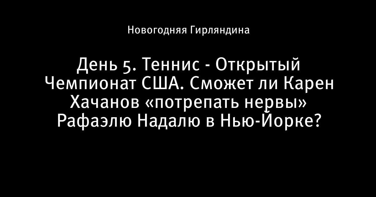 День 5. Теннис - Открытый Чемпионат США. Сможет ли Карен Хачанов «потрепать нервы» Рафаэлю Надалю в Нью-Йорке?
