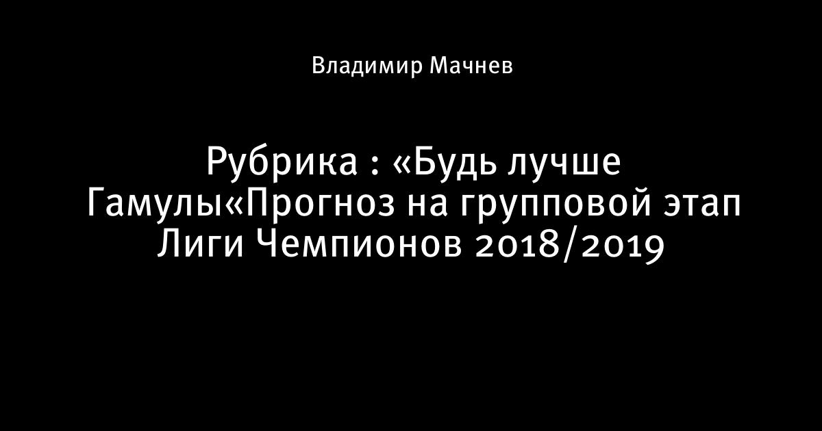 Рубрика : «Будь лучше Гамулы«Прогноз на групповой этап Лиги Чемпионов 2018/2019