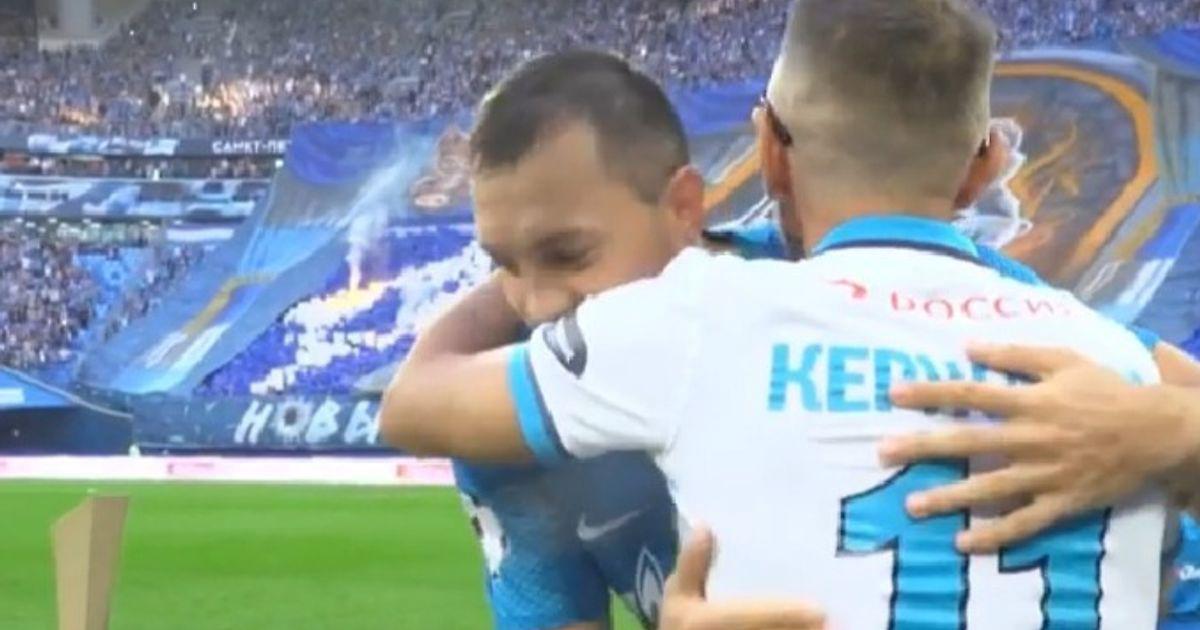Перед матчем со «Спартаком» (0:0) Сергей Шнуров вручил Артему Дзюбе награду как лучшему игроку питерцев в августе.