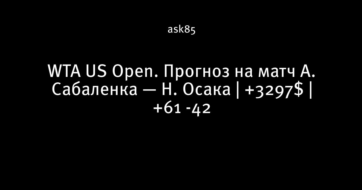 WTA US Open. Прогноз на матч А. Сабаленка — Н. Осака | +3297$ | +61 -42
