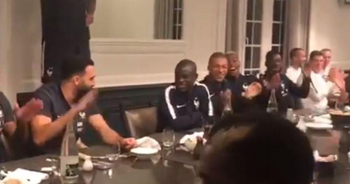 Кипера Бенжамена Лекомта впервые вызвали на матчи сборной, и во время обеда он встал на стул, чтобы спеть свою песню в качестве посвящения. Команда поддержала Лекомта, устроив настоящий мюзикл с размахиванием полотенец и отбиванием бита по столу. Участвовали все, кроме Нголо Канте, который скромно сидел и улыбался. Нголо – милашка: