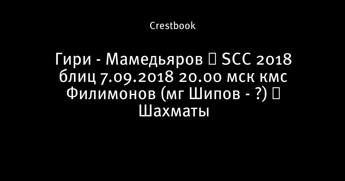 7 сентября 2018, 01:42 Гири - Мамедьяров ⚡️ SСС 2018 блиц ⏰ 7.09.2018 20.00 мск 🎤 кмс Филимонов (мг Шипов - ?) ♕ Шахматы Автор Crestbook Этот пост опубликован в блоге на Трибуне Sports.ru. Присоединяйтесь к крупнейшему сообществу спортивных болельщиков! Другие посты блога Увлекательные шахматы Шахрияр Мамедьяров Сергей Шипов Аниш Гири