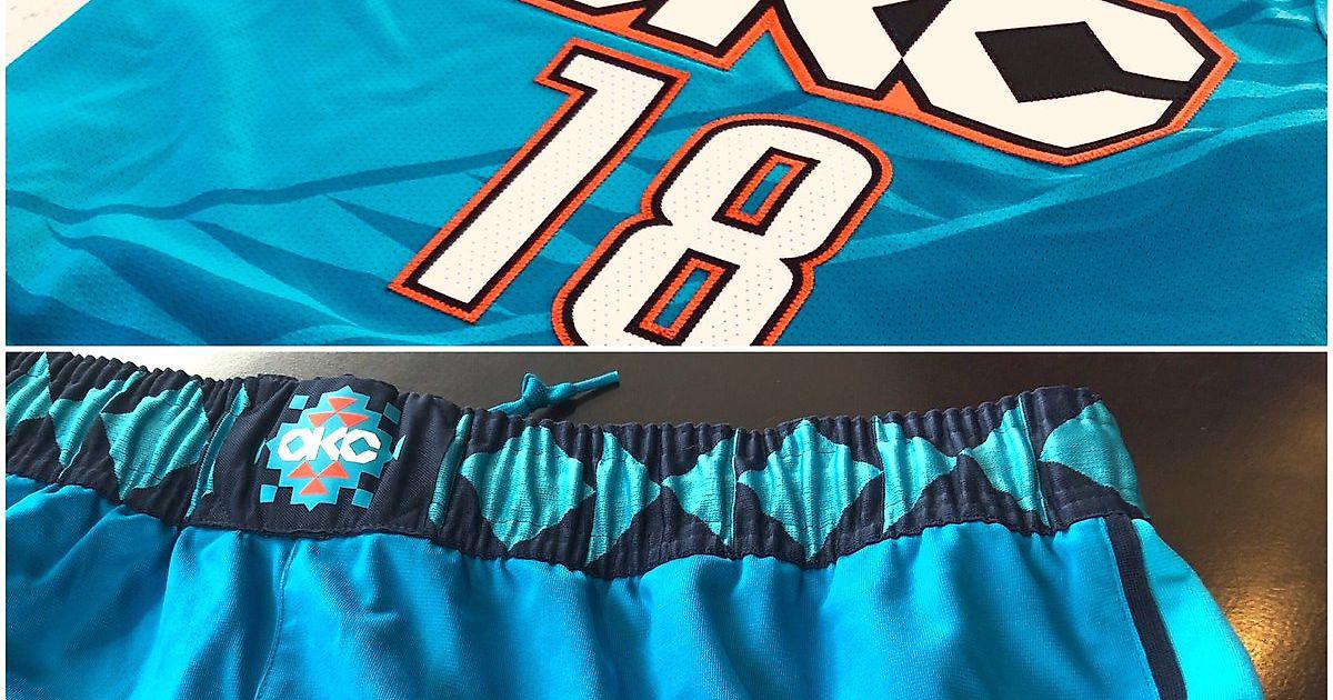 Одним из таких вариантов стал вот этот под индейскую тематику. Несмотря на то, что штат Оклахома ассоциируется с тремя вещами - ураганами, бизонами и индейцами (на территории штата до прихода европейцев жили индейские племена), было удивительно увидеть нотки индейского орнамента на слитой прошедшей ночью форме. Вероятно, не все (особенно в русскоязычном коммьюнити) поймут, к чему тут индейцы, ведь тот же вопрос часто возникает и про бизонов (несмотря на то, что маскот клуба - бизон), да и слишком уж он похож на культового быка из Чикаго.