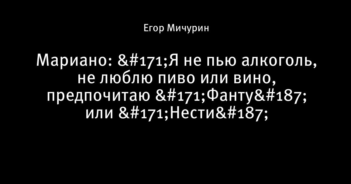 Мариано: «Я не пью алкоголь, не люблю пиво или вино, предпочитаю «Фанту» или «Нести»