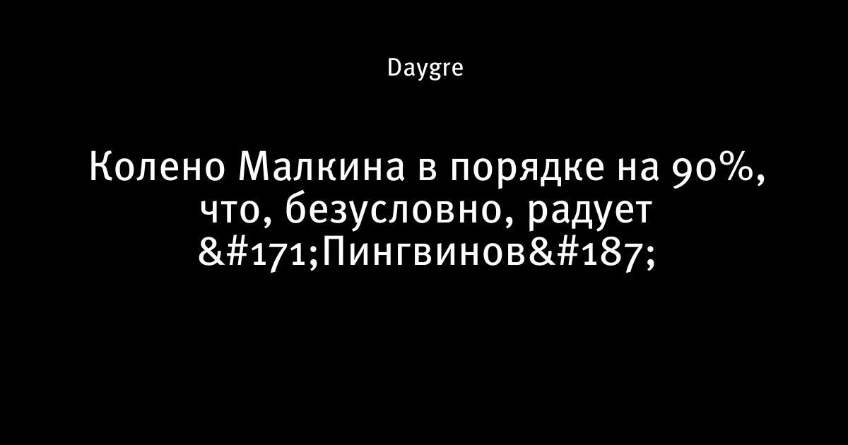 Колено Малкина в порядке на 90%, что, безусловно, радует «Пингвинов»