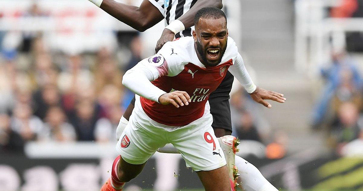 Чех выносит мяч от ворот, Ляказетт проигрывает борьбу, и владение переходит к "Ньюкаслу".