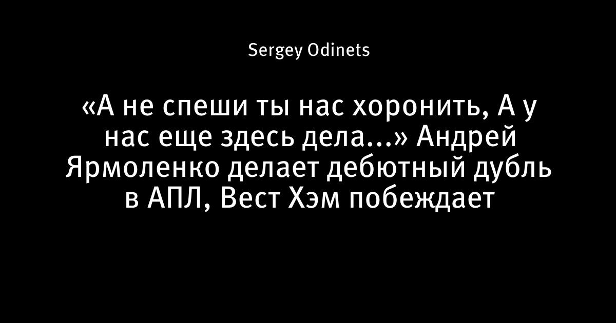 «А не спеши ты нас хоронить, А у нас еще здесь дела...» Андрей Ярмоленко делает дебютный дубль в АПЛ, Вест Хэм побеждает
