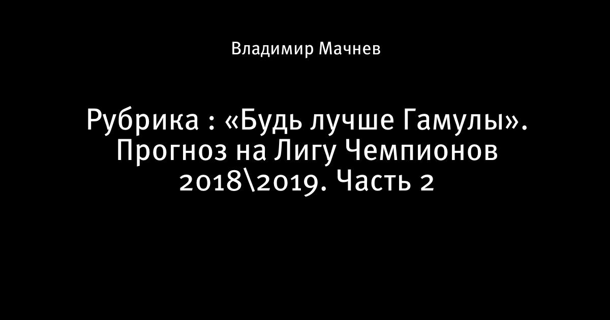 Рубрика : «Будь лучше Гамулы». Прогноз на Лигу Чемпионов 2018\2019. Часть 2