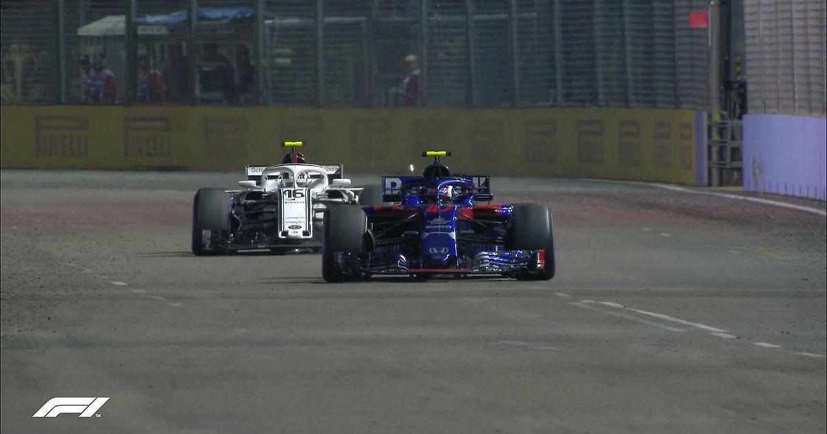 Во время Гран-при Сингапура на трассе схлестнулись в очной борьбе гонщики «Заубера» Шарль Леклер и «Торо Россо» Пьер Гасли.