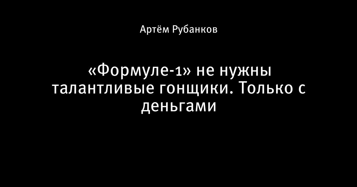 «Формуле-1» не нужны талантливые гонщики. Только с деньгами