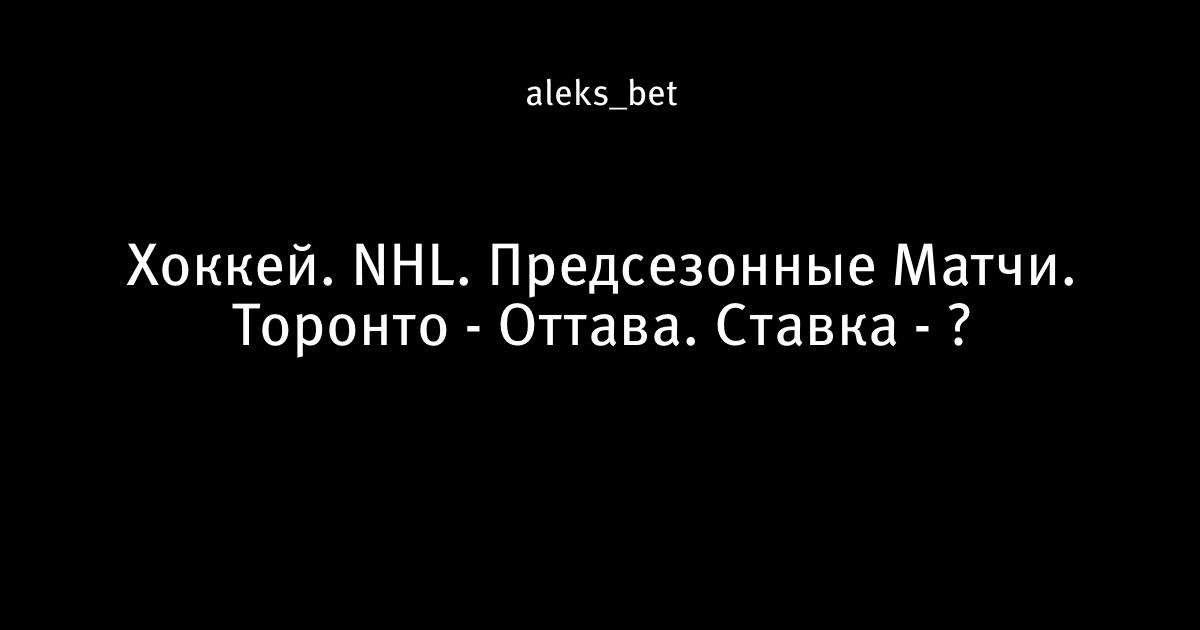 Хоккей. NHL. Предсезонные Матчи. Торонто - Оттава. Ставка - ?