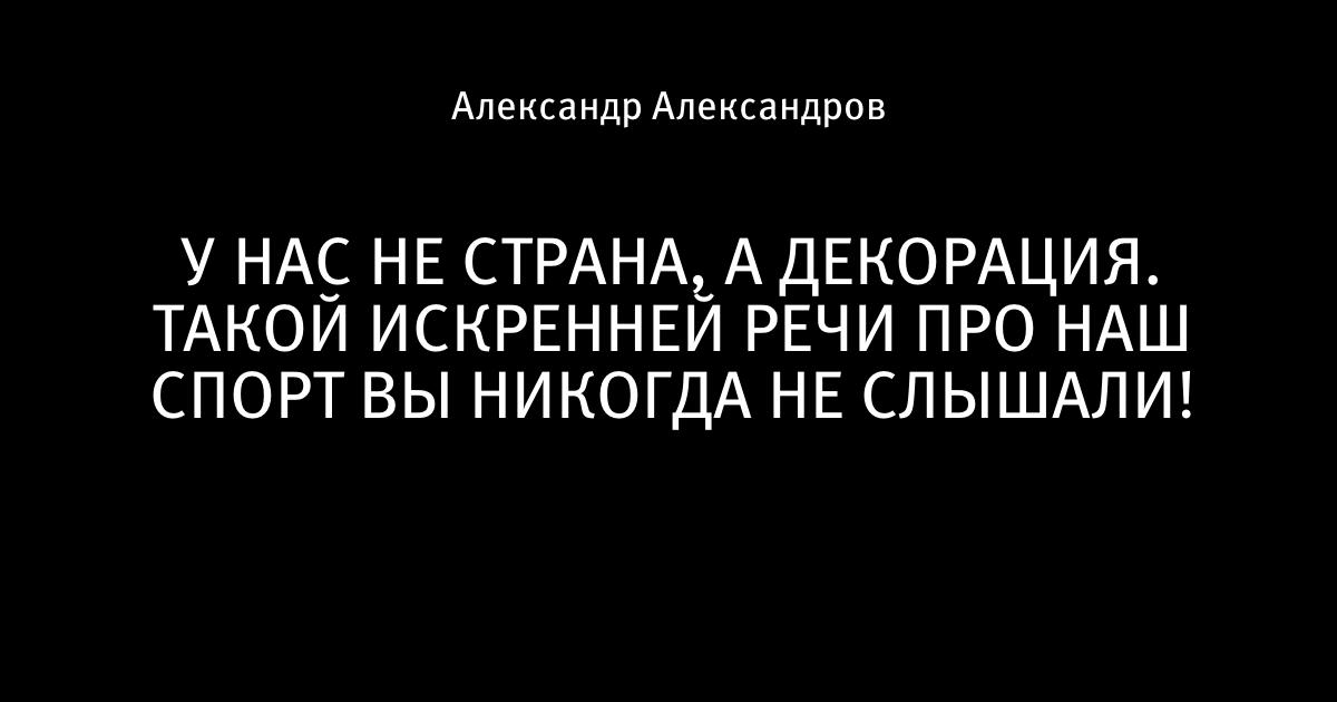 У НАС НЕ СТРАНА, А ДЕКОРАЦИЯ. ТАКОЙ ИСКРЕННЕЙ РЕЧИ ПРО НАШ СПОРТ ВЫ НИКОГДА НЕ СЛЫШАЛИ!