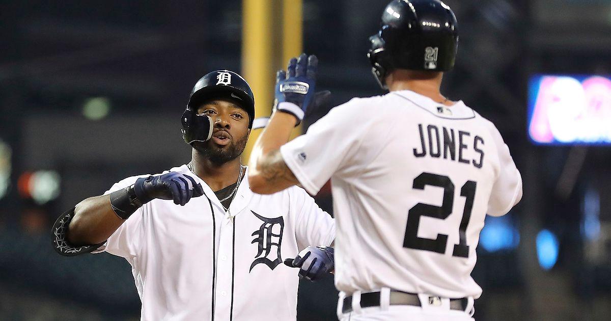 "Детройт Тайгерс"-"Канзас-Сити Ройалс" 11:8.В первом иннниге Хорхе Бонифацио своим хоум-раном (4) отправил Уайта Меррифилда и Хантера Дозьера в дом,выведя гостей вперёд.Хозяева ответили хоум-раном (1) Кристина Стюарта и забеганием ДжаКоби Джонса.Затем Николас Кастельянос выбил хоум-ран (22) и сравнял счёт в матче.Во втором иннинге Брайан Гудвин своим хоум-раном (5) отправил Алсидеса Эскобара в дом,выведя гостей вперёд.Хозяева ответили хоум-раном (2) Кристина Стюарта и забеганиями Пета Козма и ДжаКоби Джонса.Затем Виктор Мартинес выбил дабл (21) и Николас Кастельянос забежал в дом.В 4 иннинге Хантер Дозьер своим хоум-раном (10) отправил Уайта Меррифилда в дом.сократив отставание гостей.В 7 иннинге после ошибки питчера гостей Доуэл Луго принёс хозяевам ещё одно очко.В 9 иннинге Адальберто Мондеси выбил хоум-ран (11) и сократил снова отставание гостей.Реливер хозяев Зак Рейнинджер (1-0) заработал 23 страйка,по два флай-аута и гранд-аута.