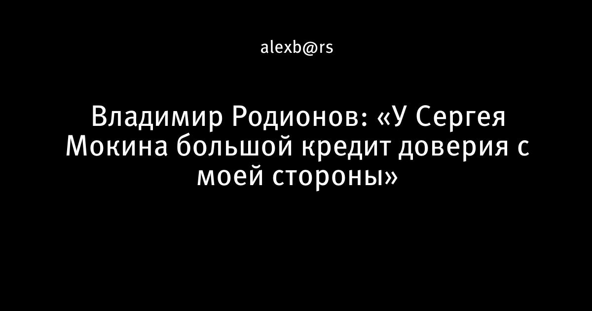 Владимир Родионов: «У Сергея Мокина большой кредит доверия с моей стороны»