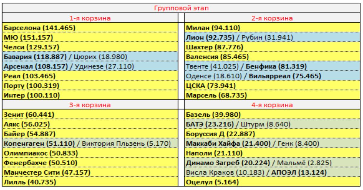 Продолжают формироваться корзины для жеребьевки группового раунда Лиги чемпионов. К данному моменту ЦСКА обеспечил себе место во второй корзине, «Зенит» же пока возглавляет третью корзину.
