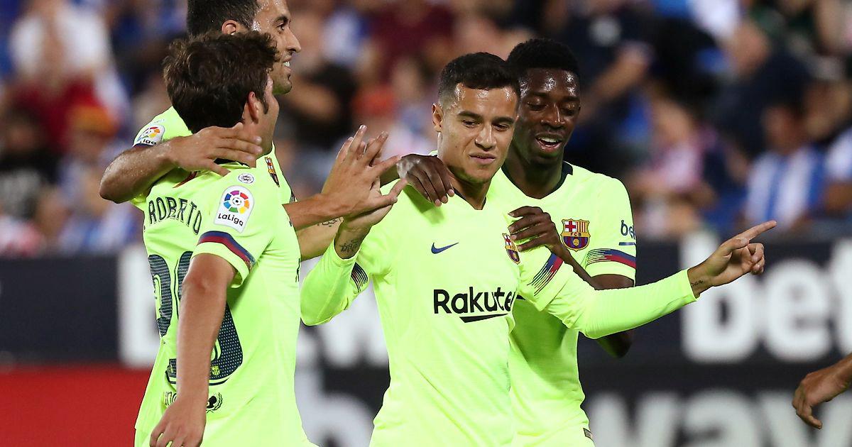 «Барселона» сегодня играет с «Леганесом» (видеотрансляция – тут), последней командой Ла Лиги. Первый гол забил Коутиньо – очень красиво. Месси ушел от двоих, отдал бразильцу, а тот сначала подбросил мяч, а потом пробил, не опуская на газон. Попал точно в нижний угол – вратарь не дотянулся.