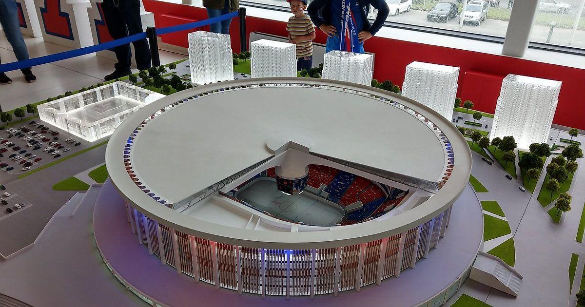 Рядом со стадионом город и клуб возведут целый квартал – со школами и детскими садами. Макет будущей ледовой арены выглядит так: