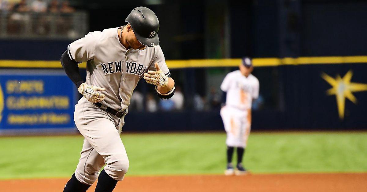 "Тампа-Бэй Рейс"-"Нью-Йорк Янкис" 1:12.В первом иннинге после ошибки хозяев Бретт Гарднер вывел гостей вперёд.Затем Мигель Андухар своим хоум-раном (27) отправил Люка Войта и Джанкарло Стэнтона в дом.В 4 иннинге Люк Войт выбил дабл (5) и Бретт Гарднер увеличили отрыв гостей.В 6 иннинге Бретт Гаднер выбил трипл (7) и Адейни Эчаварриа увеличил разницу в счёте.Затем Люк Войт выбил хоум-ран (13).Далее Джанкарло Стэнтон своим хоум-раном (36) сделал разрыв в счёте огромным.В 7 иннинге Си-Джей Крон своим хоум-раном (29) размочил счёт в матче.В 9 иннинге Джанкарло Стэнтон своим хоум-раном (37) установил окончательный счёт в матче.Стартовый питчер гостей Си-Си Сабатиа (9-7) заработал 39 страйков,два флай-аута и 4 гранд-аута.