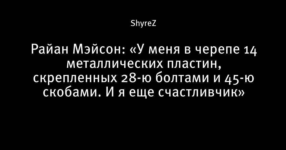 Райан Мэйсон: «У меня в черепе 14 металлических пластин, скрепленных 28-ю болтами и 45-ю скобами. И я еще счастливчик»