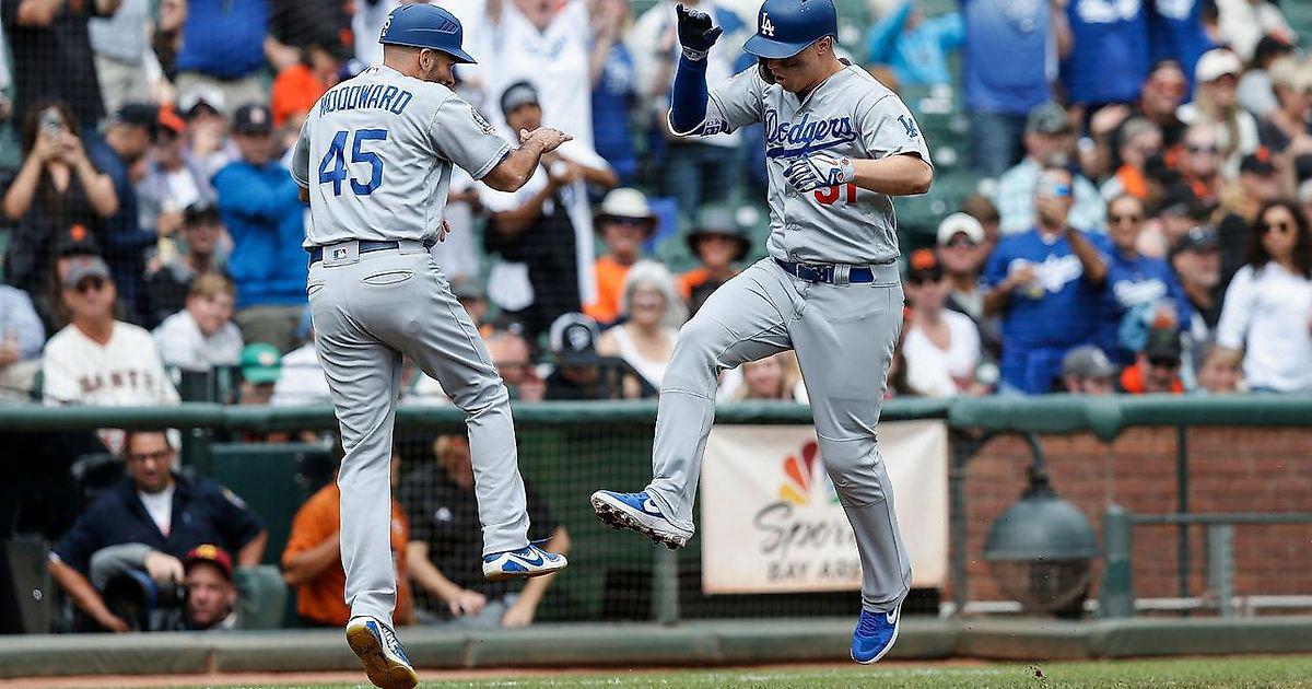 "Сан-Франциско Джайентс"-"Лос-Анджелес Доджерс" 6:10.Игра шла как на качелях до 8 иннинга,где гости смогли додавить хозяев.В первом иннинге Джок Педерсон своим хоум-раном (25) вывел гостей вперёд.Во втором иннинге Ясьель Пуиг своим хоум-раном (23) увеличил преимущество гостей.В 3 иннинге Джо Паник выбил сингл,а Грегор Бланко и Хантер Пенс вывели уже хозяев вперёд.В 4 иннинге Энрике Эрнандес выбил дабл (16) и Ясьель Пуиг сравнял счёт в матче.Затем Клэйтон Кершоу выбил сингл,а Ясмани Грандал и Энрике Эрнандес вывели гостей вперёд.В 5 иннинге Хантер Пенс выбил дабл (11) и Абьятал Авелино сократил отставание хозяев.В 8 иннинге Манни Мачадо выбил трипл (3) и Крис Тэйлор снова вывел гостей вперёд.В 9 иннинге Макс Манси выбил дабл (17),а Мэтт Кемп и Крис Тэйлор увеличили отрыв гостей.Хозяева ответили даблом (7) Грегора Бланко и забеганием Брэндона Кроуфорда.Реливер гостей Алекс Вуд (9-7) заработал 13 страйков.