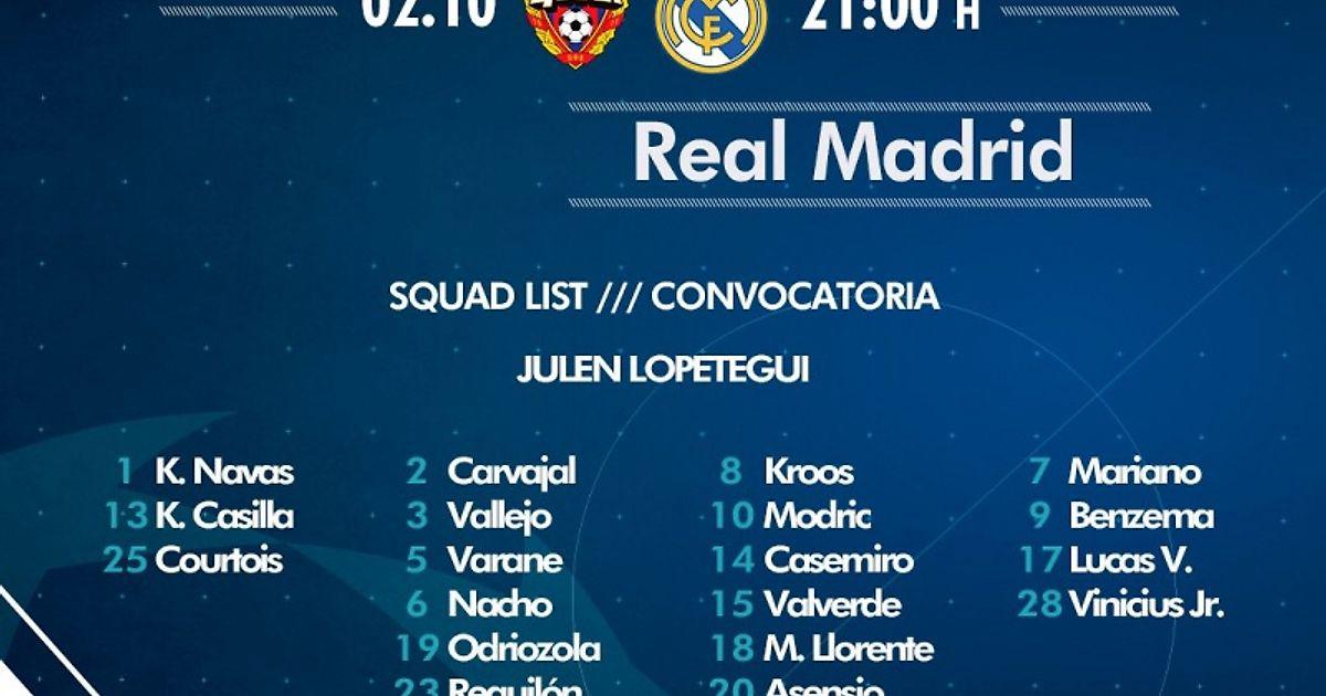 «Реал» опубликовал список 20 футболистов, которые отправятся в Москву на матч группового этапа Лиги чемпионов с ЦСКА.