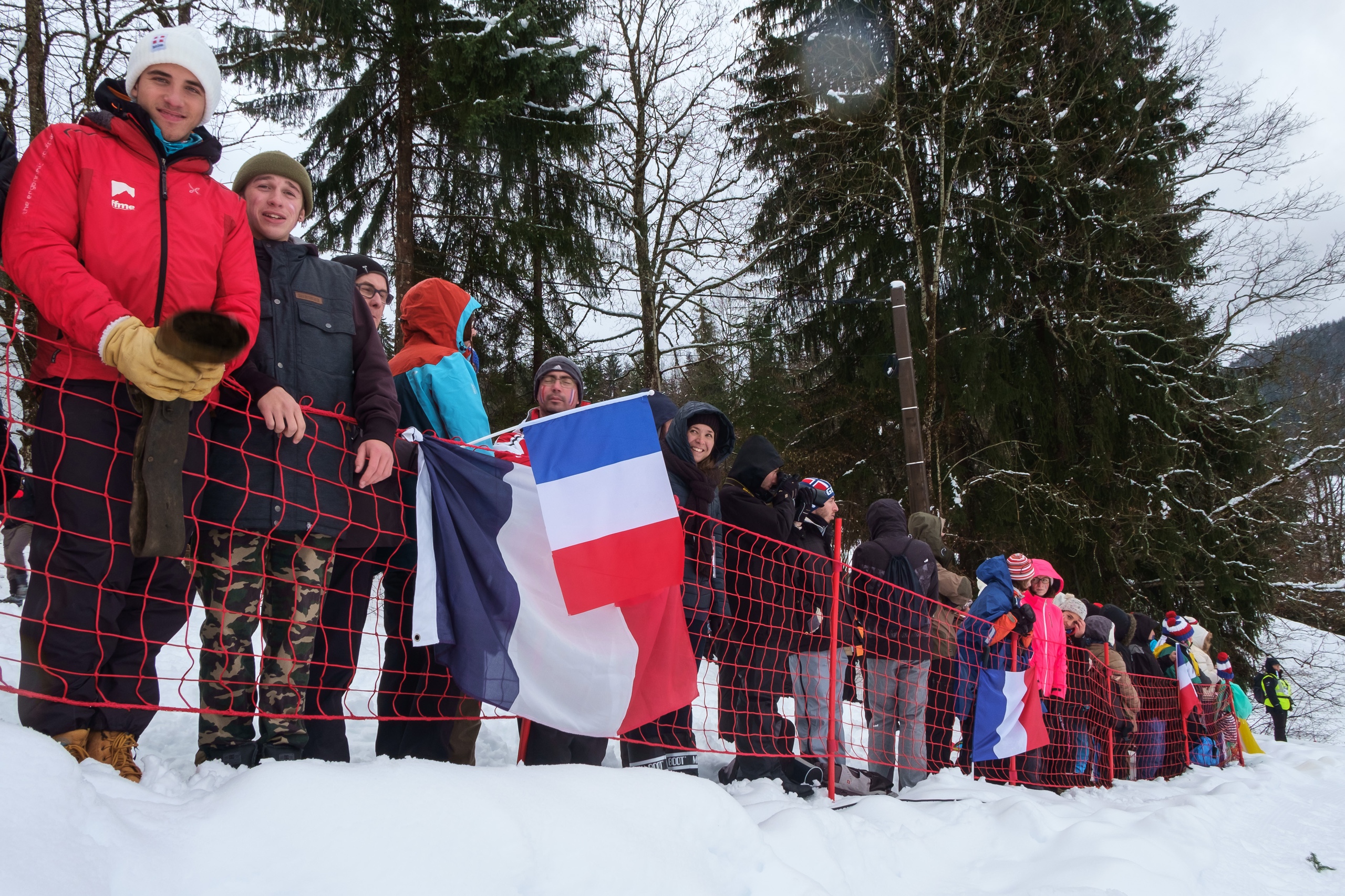 Я и сугроб (фото Christine Cailleux). Сзади слева можно увидеть нишу в сугробе, прорытую для фотографов и другого персонала, еще дальше - тренеры, которые на подъеме подсказывают спортсменам