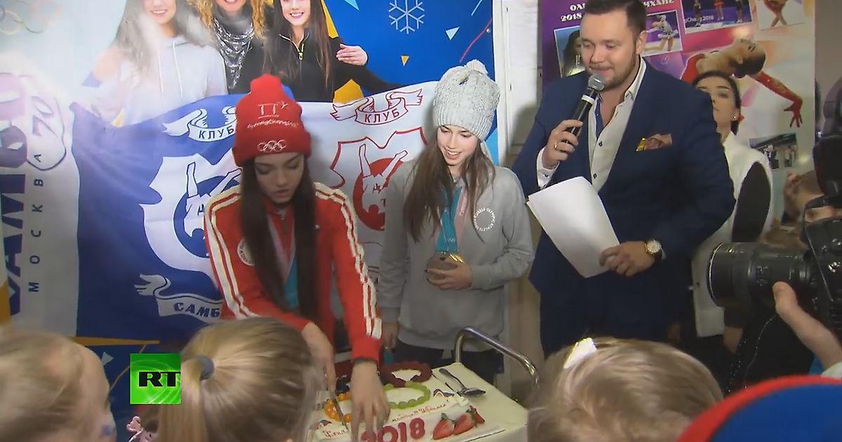 27 февраля. Репортаж РТ «Алина Загитова и Евгения Медведева посетили каток «Хрустальный»». У Алины нервы стальные?
