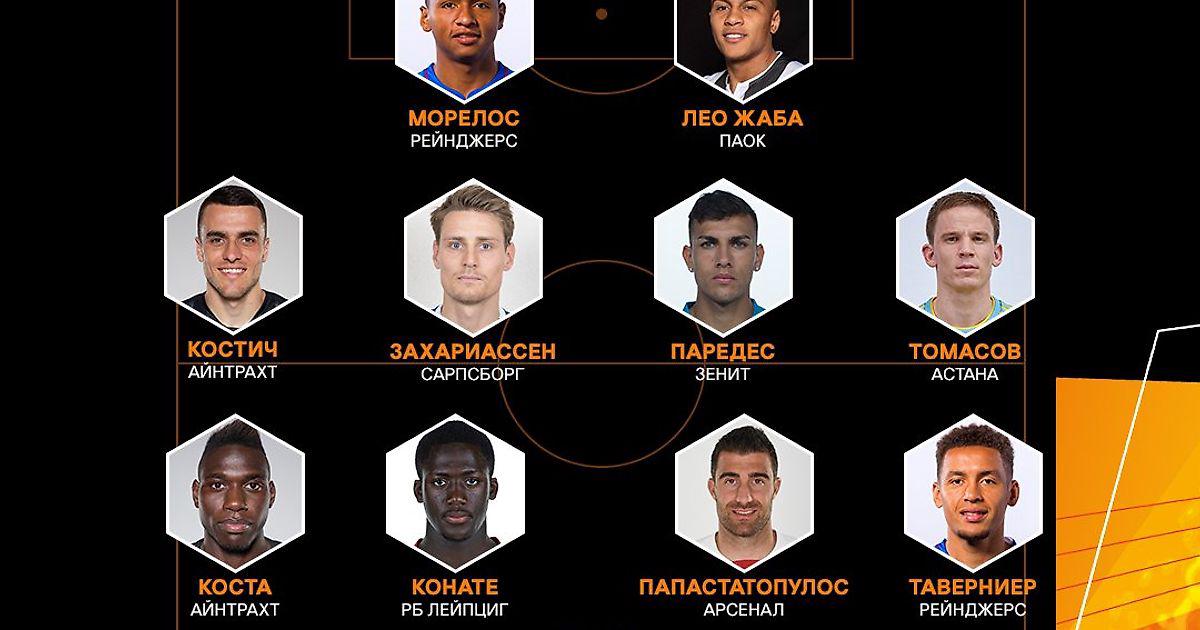 УЕФА представила символическую сборную лучших игроков 2-го тура Лиги Европы. В команду вошли:
