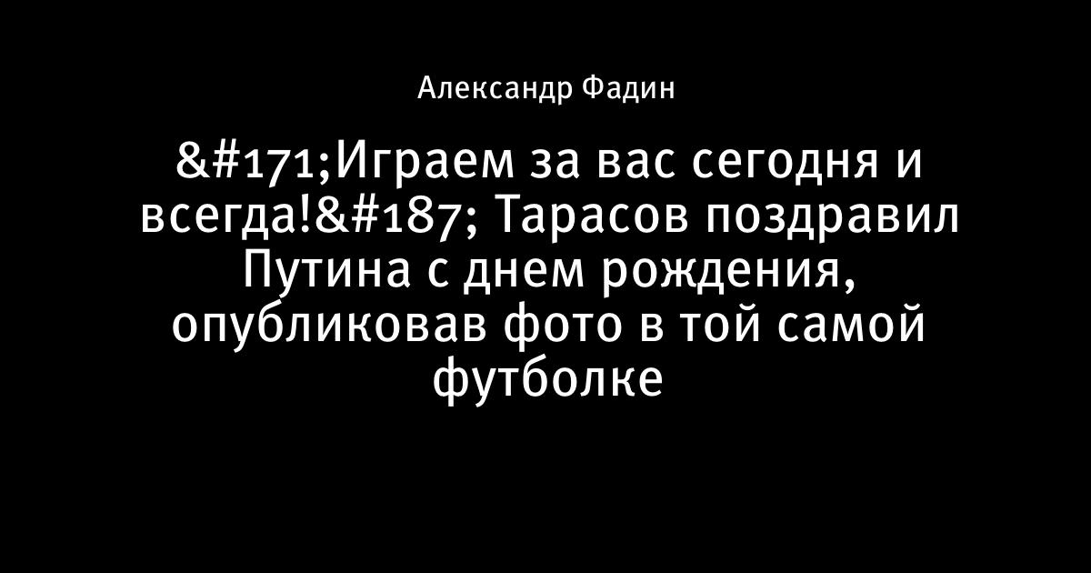 «Играем за вас сегодня и всегда!» Тарасов поздравил Путина с днем рождения, опубликовав фото в той самой футболке
