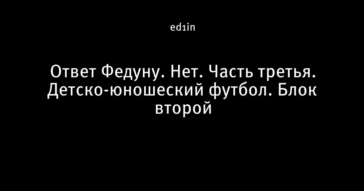 Ответ Федуну. Нет. Часть третья. Детско-юношеский футбол. Блок второй