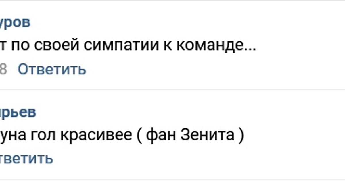 Совершенно «неожиданно» лучшим голом признали взятие ворот «зенитовца» Роберта Мака, который набрал почти 70% голосов. Вторым стал «железнодорожник» Бенедикт Хеведес (16%), а третьим – уфимец Сильвестр Игбун (14%). И всё бы ничего, только вот если судить объективно, гол Игбуна был лучшим в этом туре, и это признали даже адекватные болельщики других клубов, включая «Зенит» и «Локомотив». Так к чему проводить подобные голосования, если победитель заранее очевиден? Ниже мы приведем лишь толику комментариев под постом с голосованием.