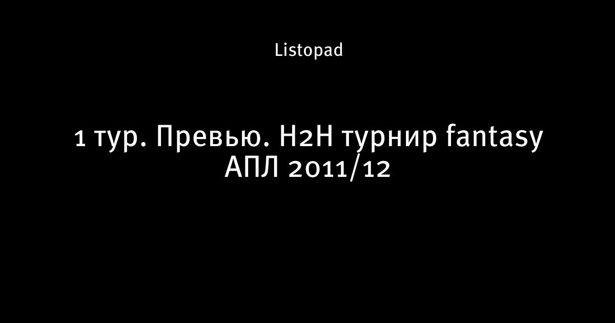 1 тур. Превью. Н2Н турнир fantasy АПЛ 2011/12