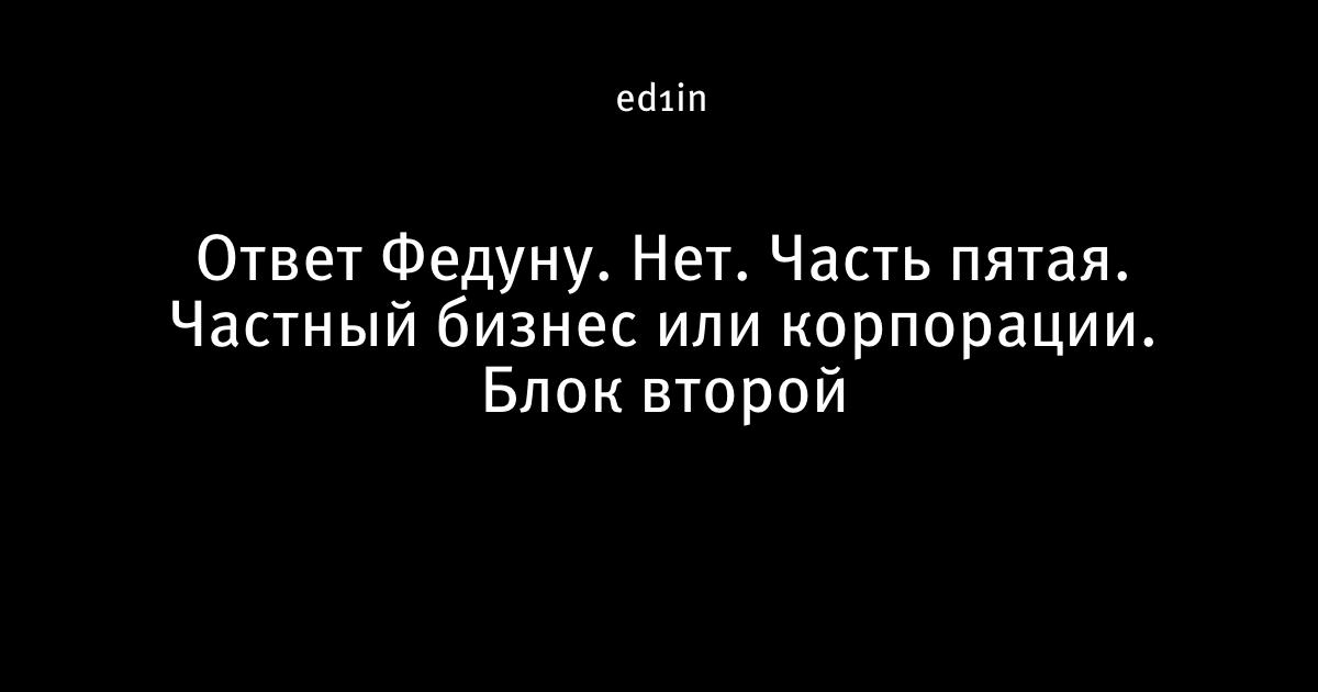 Ответ Федуну. Нет. Часть пятая. Частный бизнес или корпорации. Блок второй