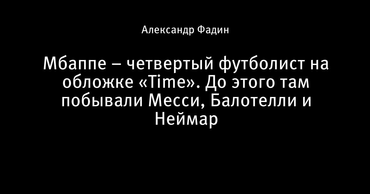 Мбаппе – четвертый футболист на обложке «Time». До этого там побывали Месси, Балотелли и Неймар