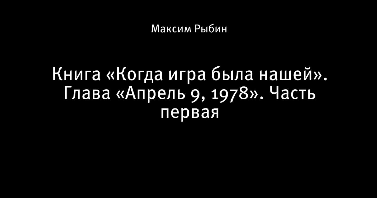 Книга «Когда игра была нашей». Глава «Апрель 9, 1978». Часть первая
