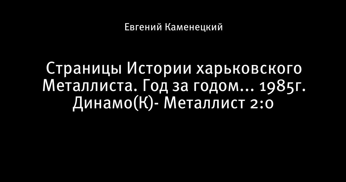 Страницы Истории харьковского Металлиста. Год за годом... 1985г. Динамо(К)- Металлист 2:0