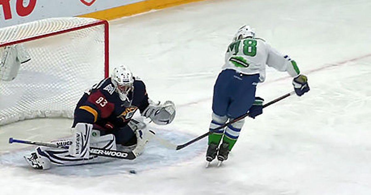 Нападающий «Салавата Юлаева» Александр Кадейкин красиво реализовал выход один на один с голкипером «Магнитки» в первом периоде их матча. Игрок не стал искать открытый угол ворот, а выехал от борта, оставил шайбу и бросил из-за спины – Кошечкин к такому не был готов.