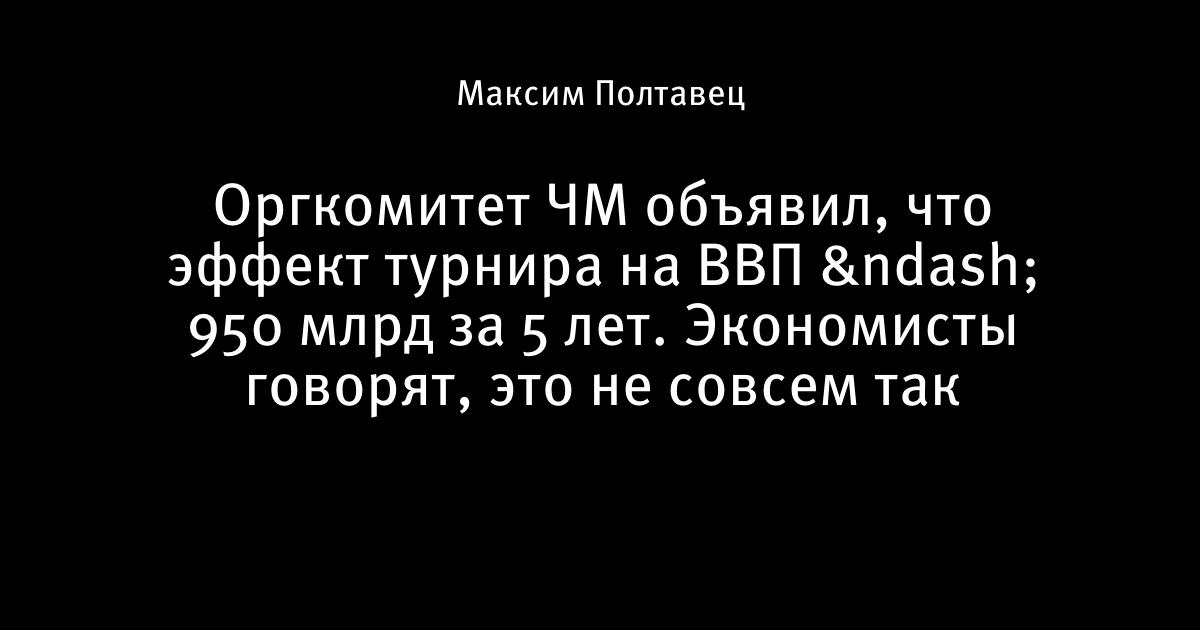 Оргкомитет ЧМ объявил, что эффект турнира на ВВП – 950 млрд за 5 лет. Экономисты говорят, это не совсем так
