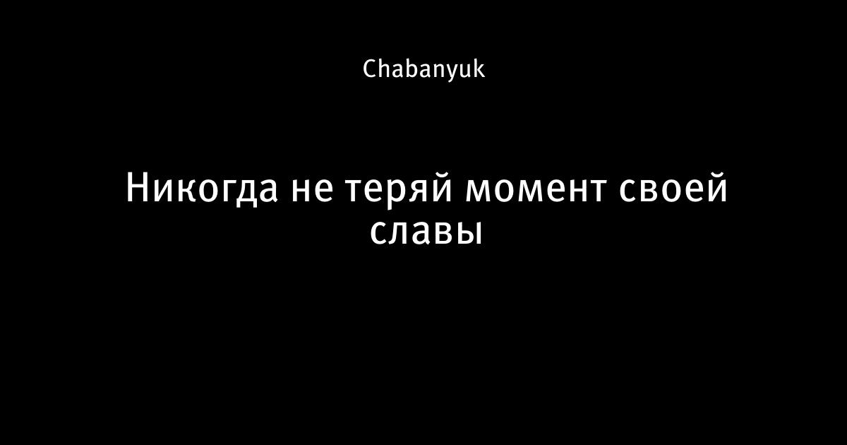 Никогда не теряй момент своей славы