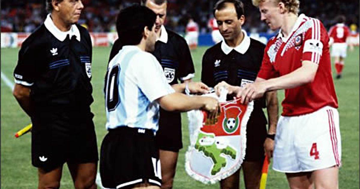 Сие произошло в реальности 13 июня 1990 года на итальянском чемпионате мира. После подачи углового Олег Кузнецов головой пробил по воротам сборной Аргентины, где на пути мяча, летевшего в ворота, опять оказалась рука Марадоны. Пенальти чистой воды! Только вот опять свисток того же Фредрикссона молчит. В итоге аргентинцы в конце первого тайма забили первый раз, а во втором после грубой ошибки советской обороны – во второй.
