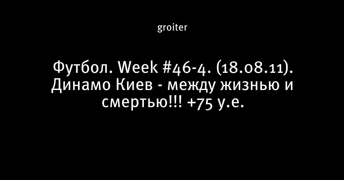 Футбол. Week #46-4. (18.08.11). Динамо Киев - между жизнью и смертью!!! +75 у.е.