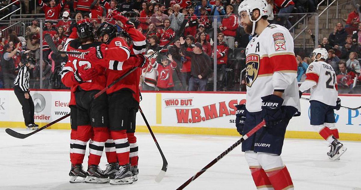 "Нью-Джерси Дэвилз"-"Флорида Пантерз" 3:2.Кайл Палмьери набрал 2 очка (1+1),Нико Хишир отдал 2 результативные передачи,Кит Кинкэйд отразил 35 бросков.У гостей Евгений Дадонов отдал результативную передачу."Дьяволы" выиграли после 2 поражений подряд.
