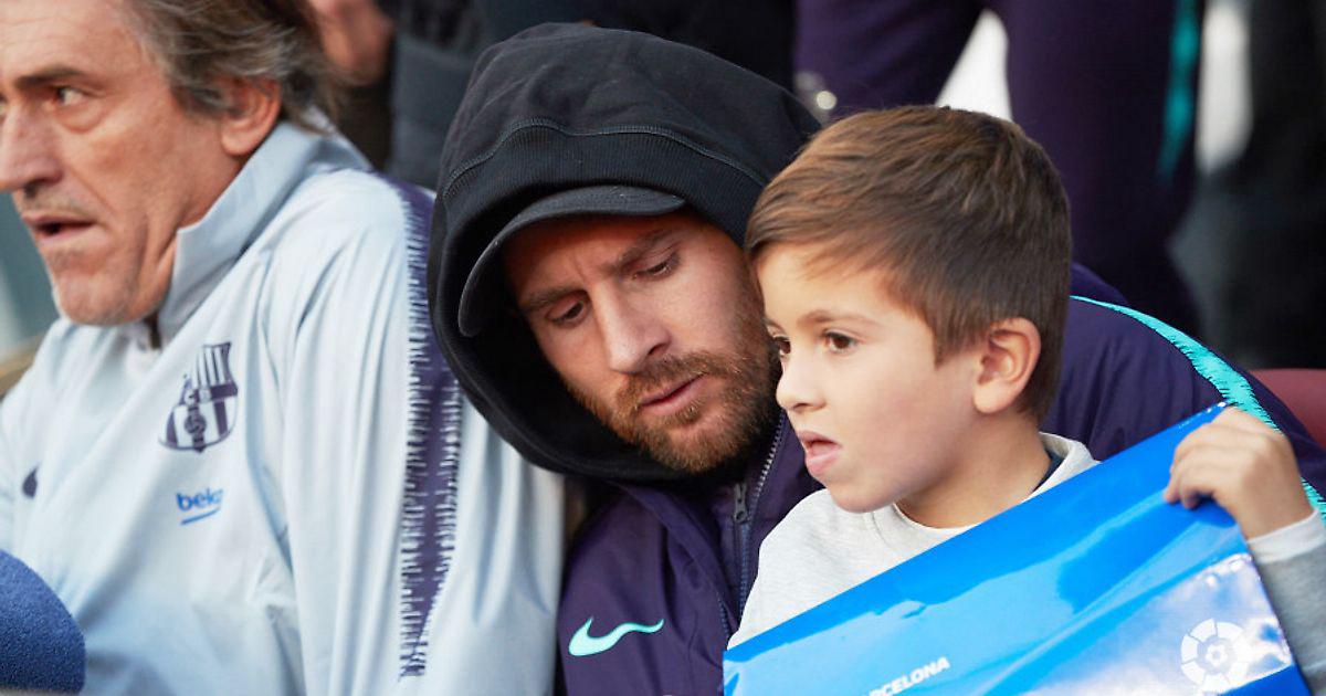 Лео Месси травмировал предплечье и не смог выйти на класико. Аргентинец приехал на матч вместе с сыном Тьяго: