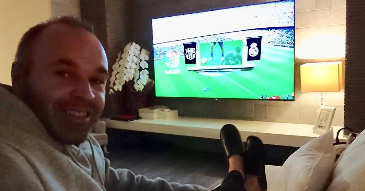 Один из лучших, если не лучший (как и Хави), игрок в истории «Барселоны» Андрес Иньеста смотрит класико в прямом эфире из Японии. Полузащитник опубликовал фото в инстаграме: