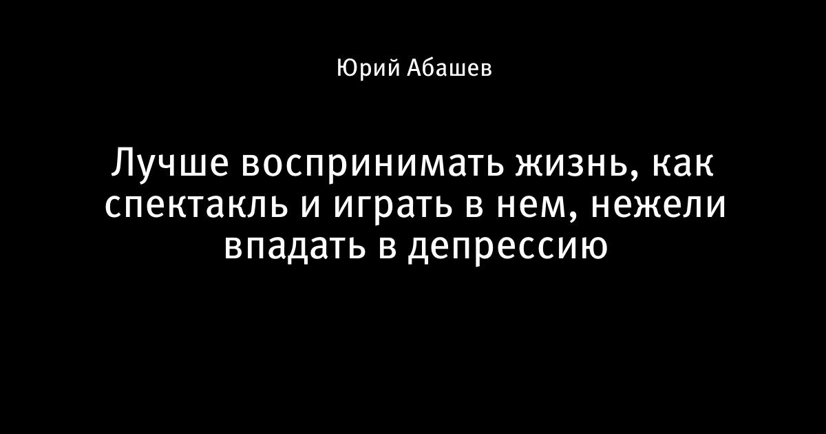 Лучше воспринимать жизнь, как спектакль и играть в нем, нежели впадать в депрессию