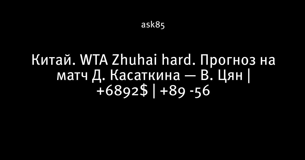 Китай. WTA Zhuhai hard. Прогноз на матч Д. Касаткина — В. Цян | +6892$ | +89 -56