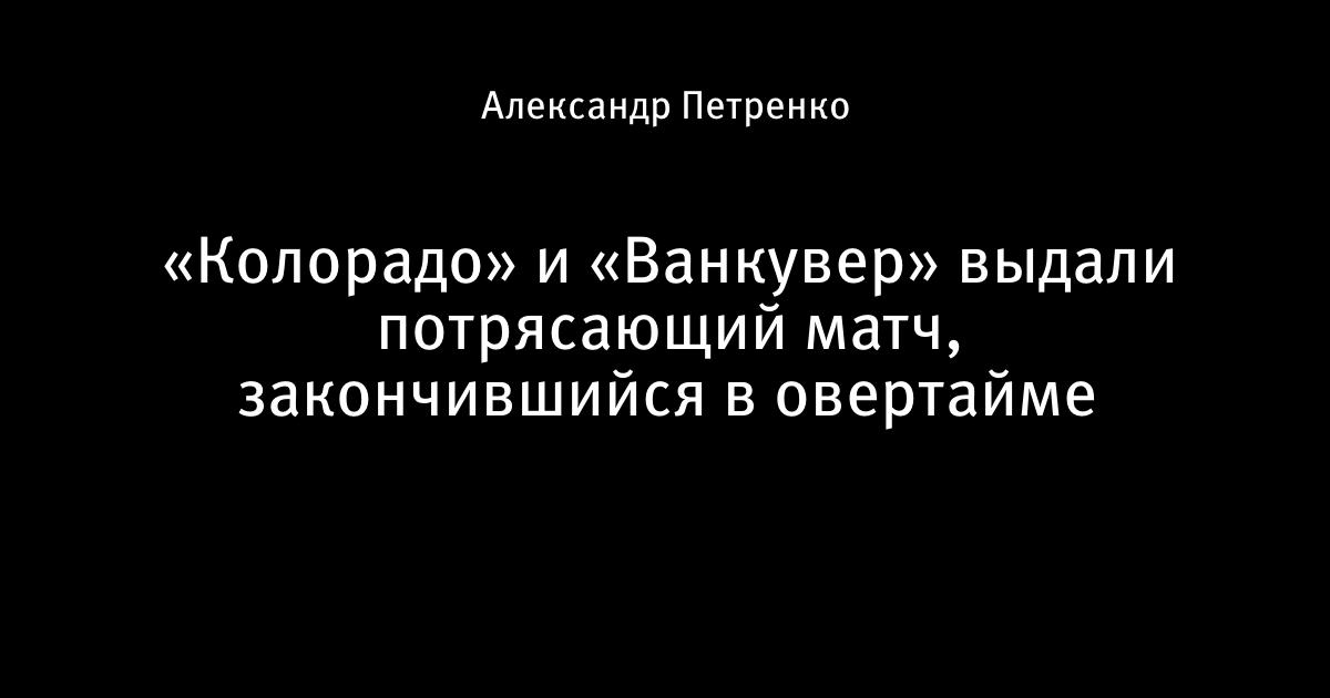 «Колорадо» и «Ванкувер» выдали потрясающий матч, закончившийся в овертайме
