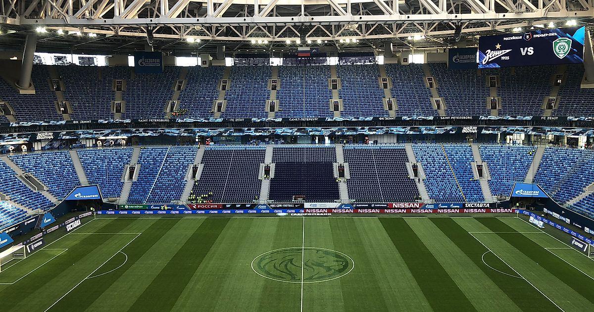 Накануне матча РПЛ с «Ахматом» на газоне стадиона «Санкт-Петербург» выстригли голову льва.