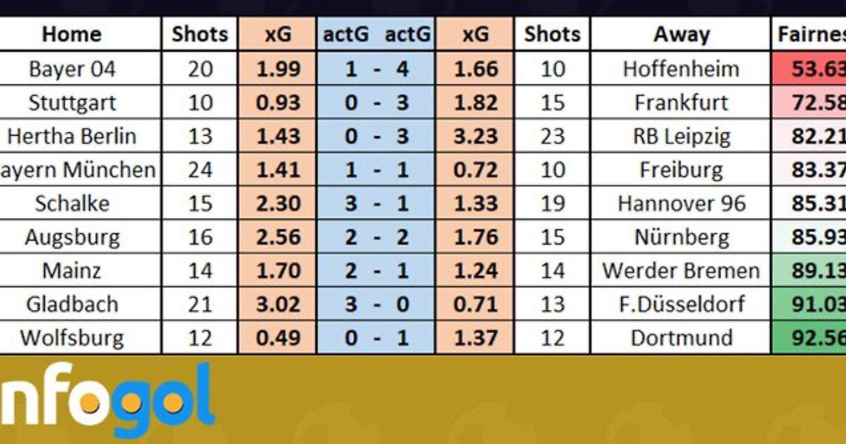 Оценка справедливости результатов 10-го тура Бундеслиги от Infogol