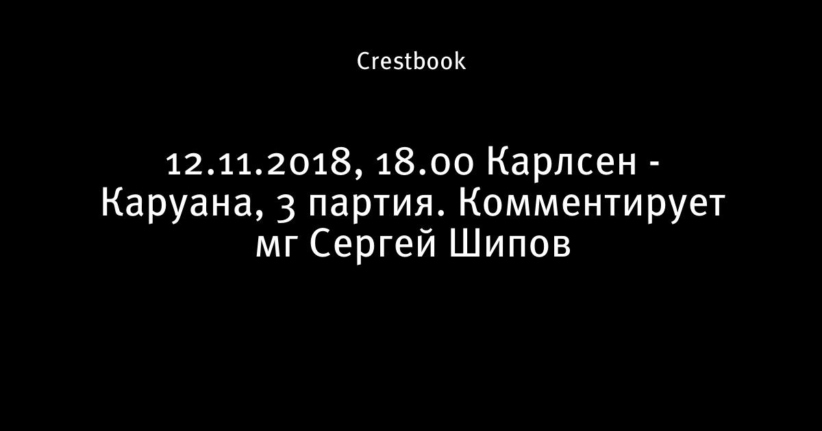 12 ноября 2018, 02:10 🔥 12.11.2018, 18.00 🔥 Карлсен - Каруана, 3 партия. Комментирует мг Сергей Шипов Автор Crestbook Этот пост опубликован в блоге на Трибуне Sports.ru. Присоединяйтесь к крупнейшему сообществу спортивных болельщиков! Другие посты блога Увлекательные шахматы Сергей Шипов Магнус Карлсен матч на первенство мира Фабиано Каруана